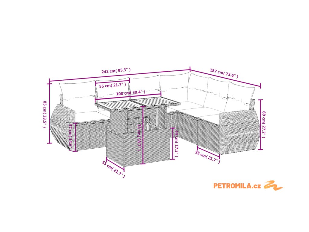 Tato zahradní sedací souprava je dokonalým doplňkem vaší zahrady, terasy nebo dvorku a poskytne vám pohodlné a příjemné místo, kde si můžete povídat s rodinou a přáteli nebo jen tak odpočívat a užívat si pobyt venku.