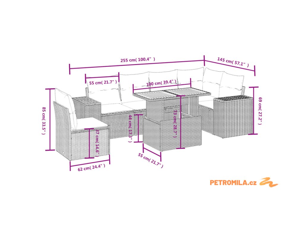 Tato zahradní sedací souprava je dokonalým doplňkem vaší zahrady, terasy nebo dvorku a poskytne vám pohodlné a příjemné místo, kde si můžete povídat s rodinou a přáteli nebo jen tak odpočívat a užívat si pobyt venku.