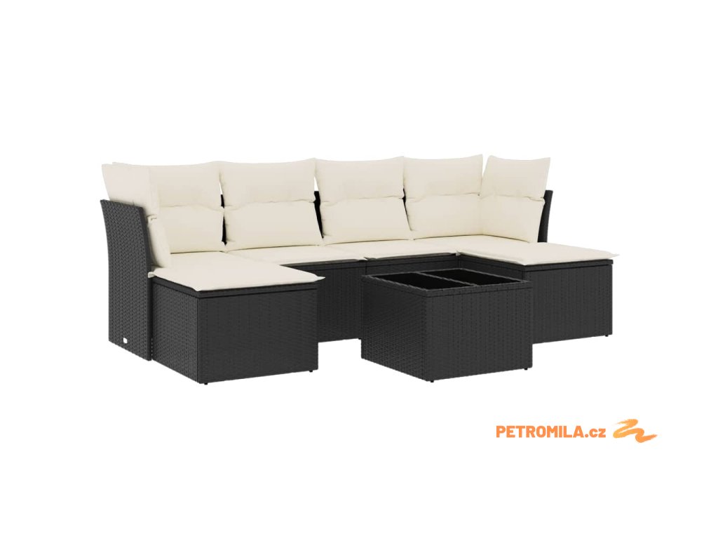 7dílná zahradní sedací souprava s poduškami černá polyratan