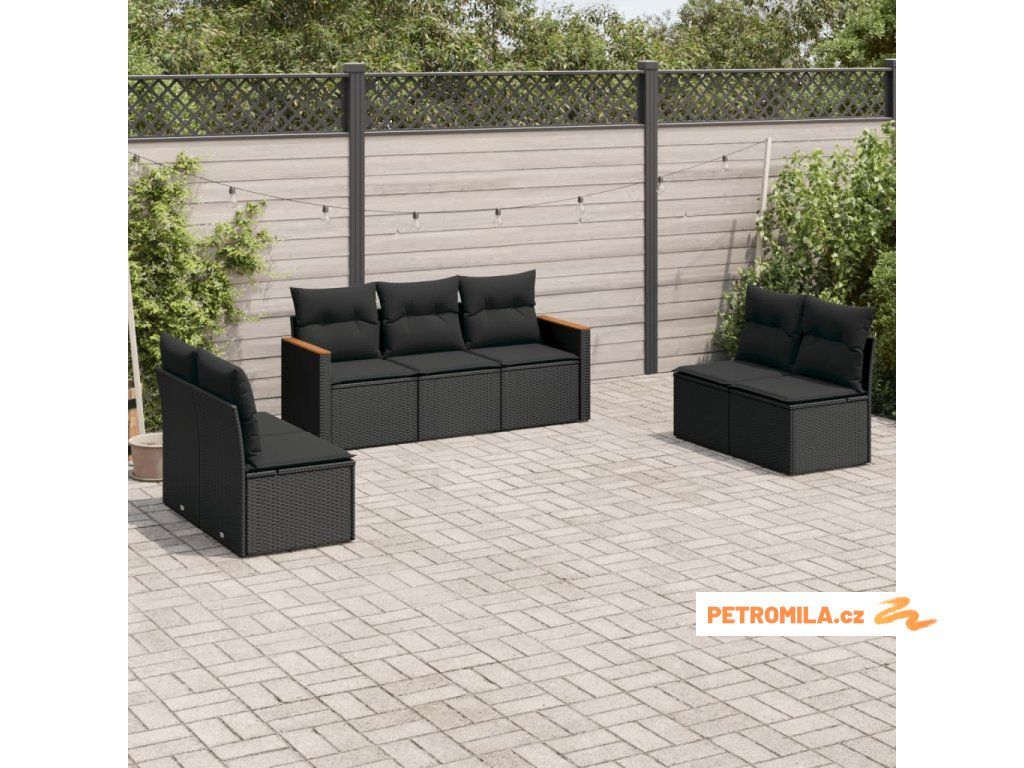 7dílná zahradní sedací souprava s poduškami černá polyratan
