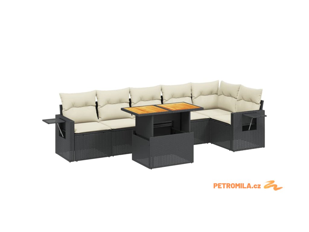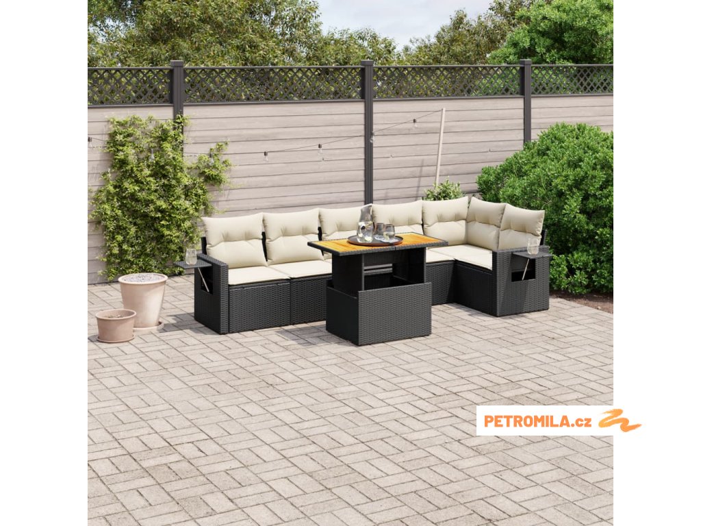 7dílná zahradní sedací souprava s poduškami černá polyratan