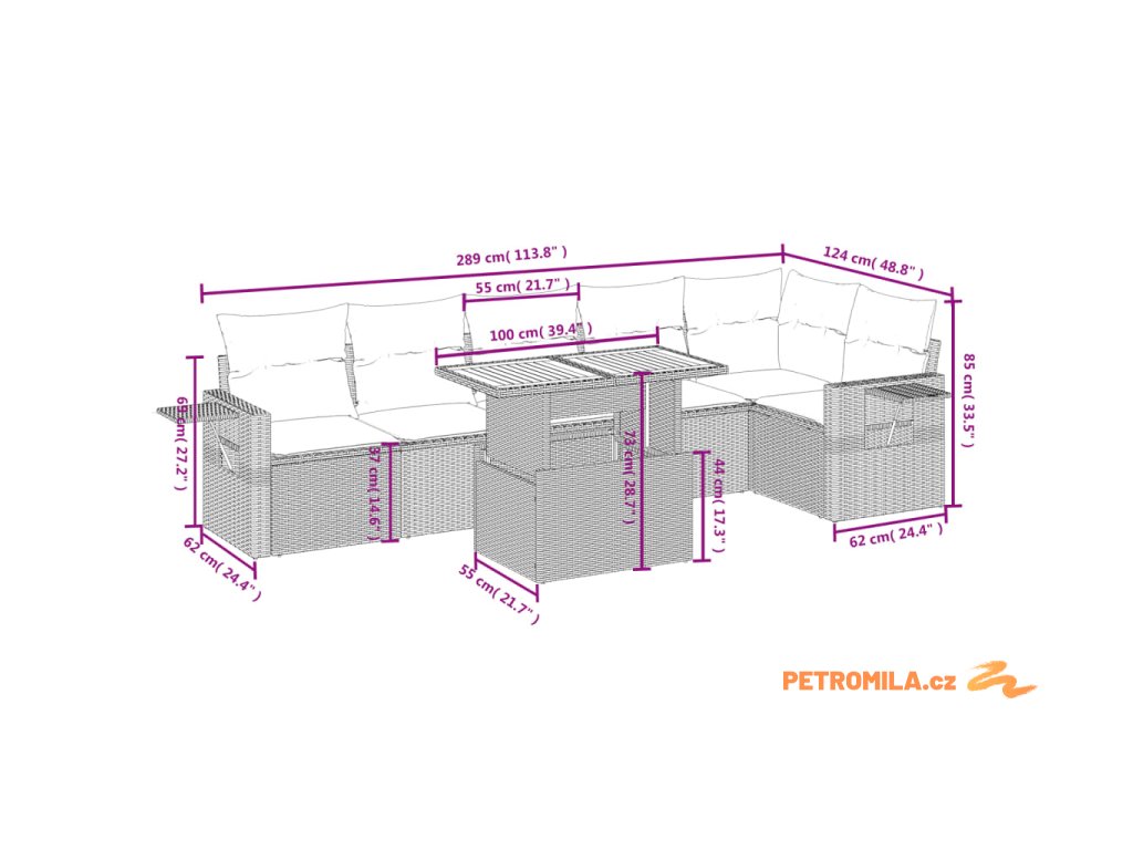 Sada zahradních pohovek s polštářem s úložištěm 8 pcs polyratan