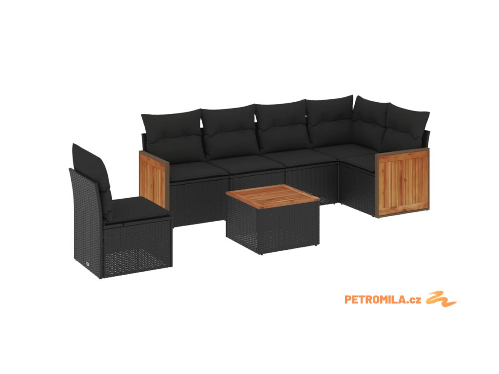 7dílná zahradní sedací souprava s poduškami černá polyratan