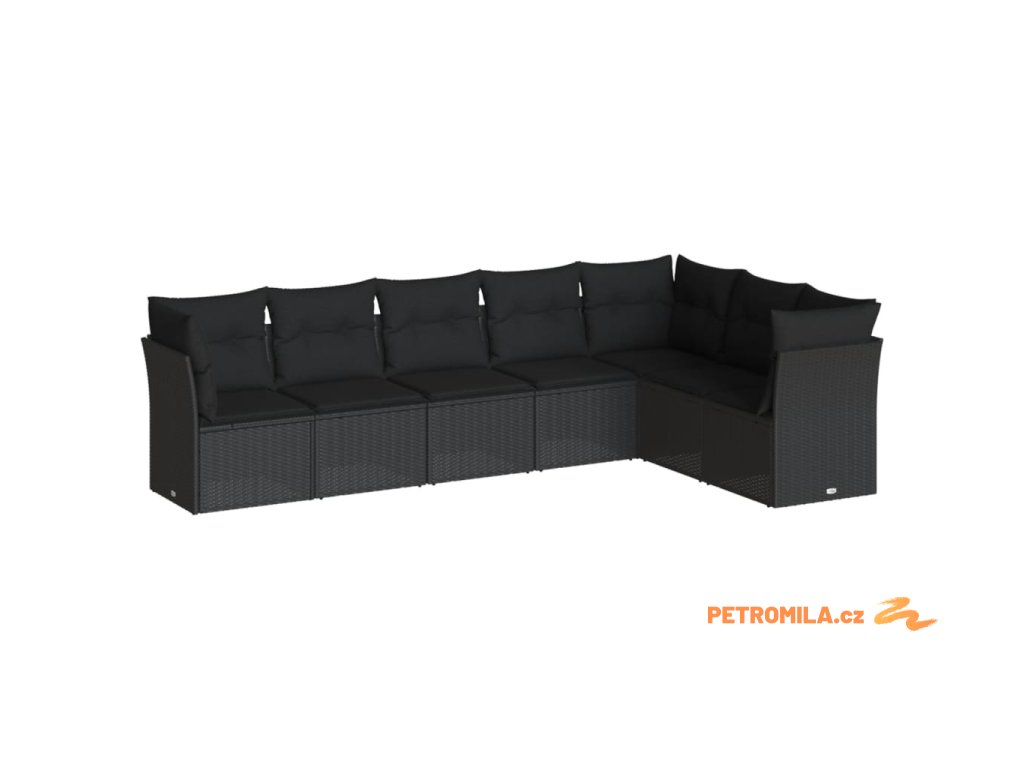7dílná zahradní sedací souprava s poduškami černá polyratan