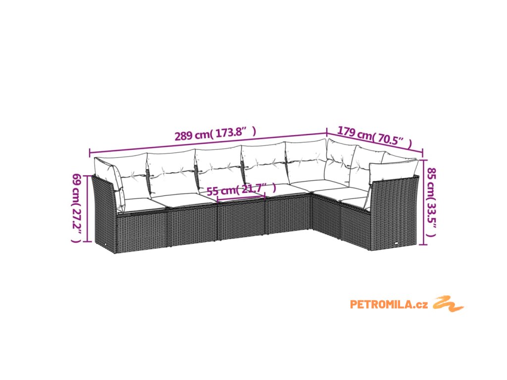 Sada zahradních pohovek s polštářem 6 pcs Černá Poly Ratan