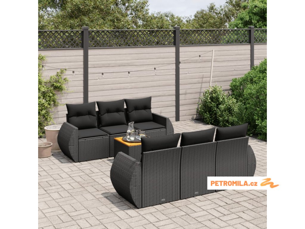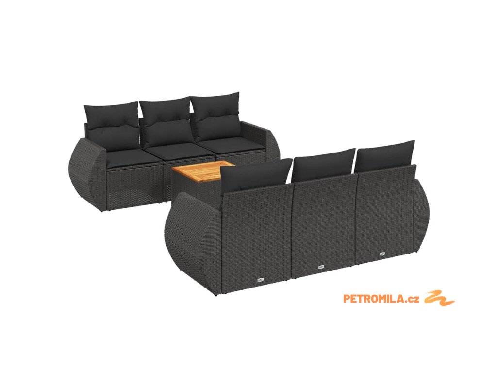 7dílná zahradní sedací souprava s poduškami černá polyratan