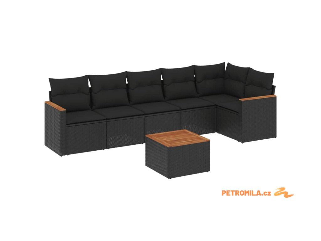 7dílná zahradní sedací souprava s poduškami černá polyratan