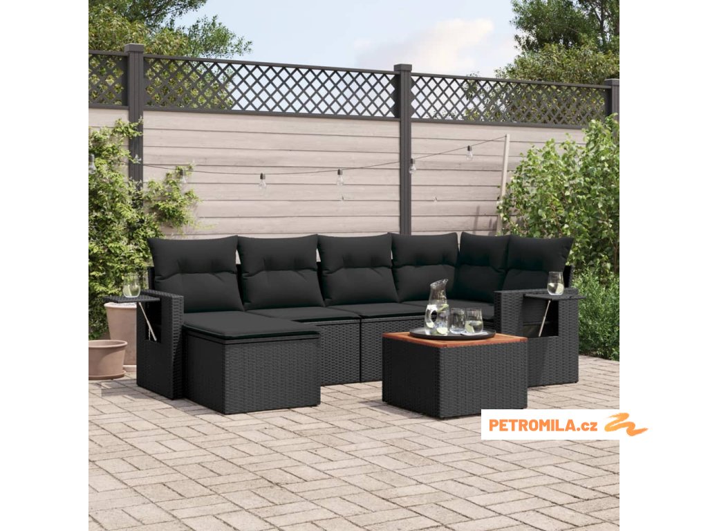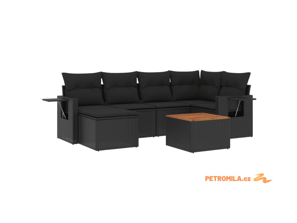 7dílná zahradní sedací souprava s poduškami černá polyratan