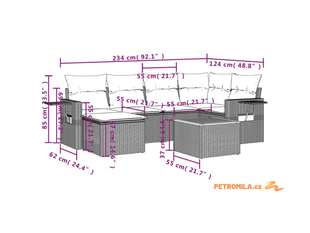 Sada zahradních pohovek s polštářem 7 pcs Hnědá Poly ratan