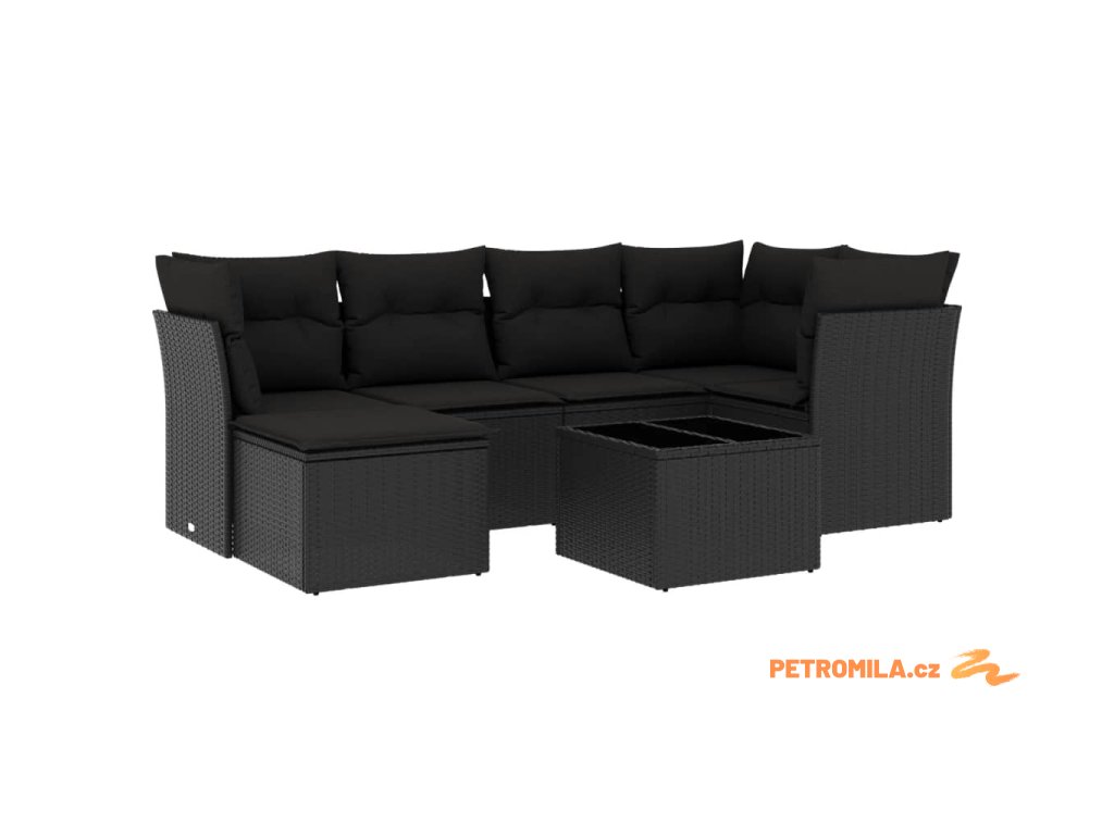 7dílná zahradní sedací souprava s poduškami černá polyratan