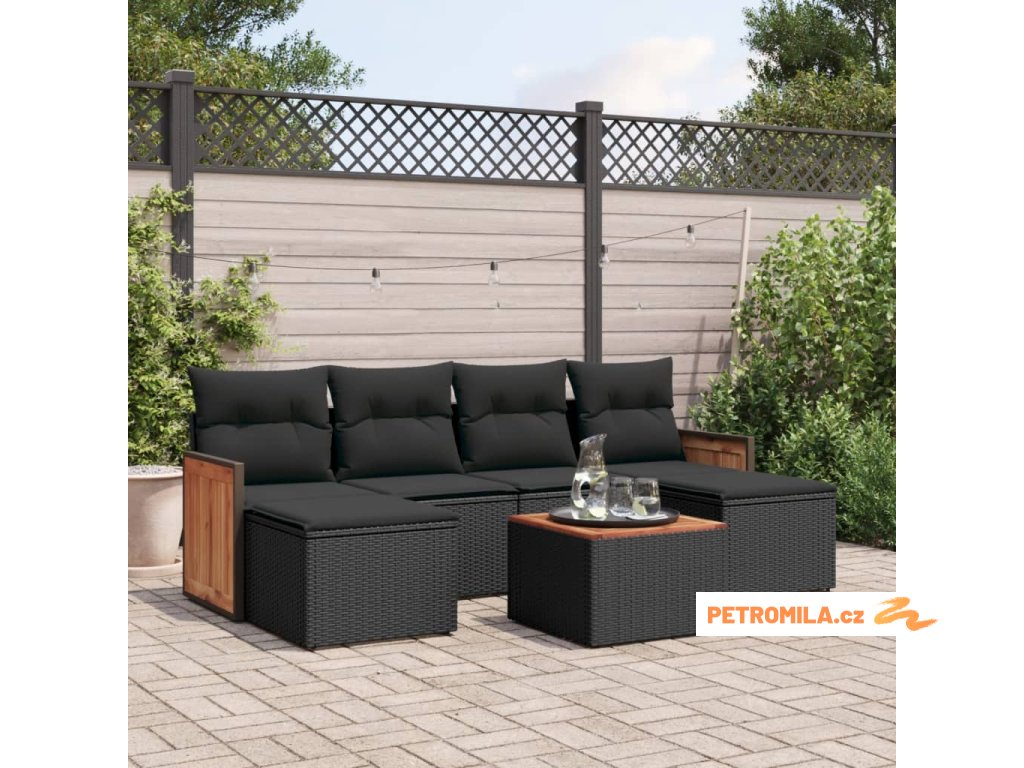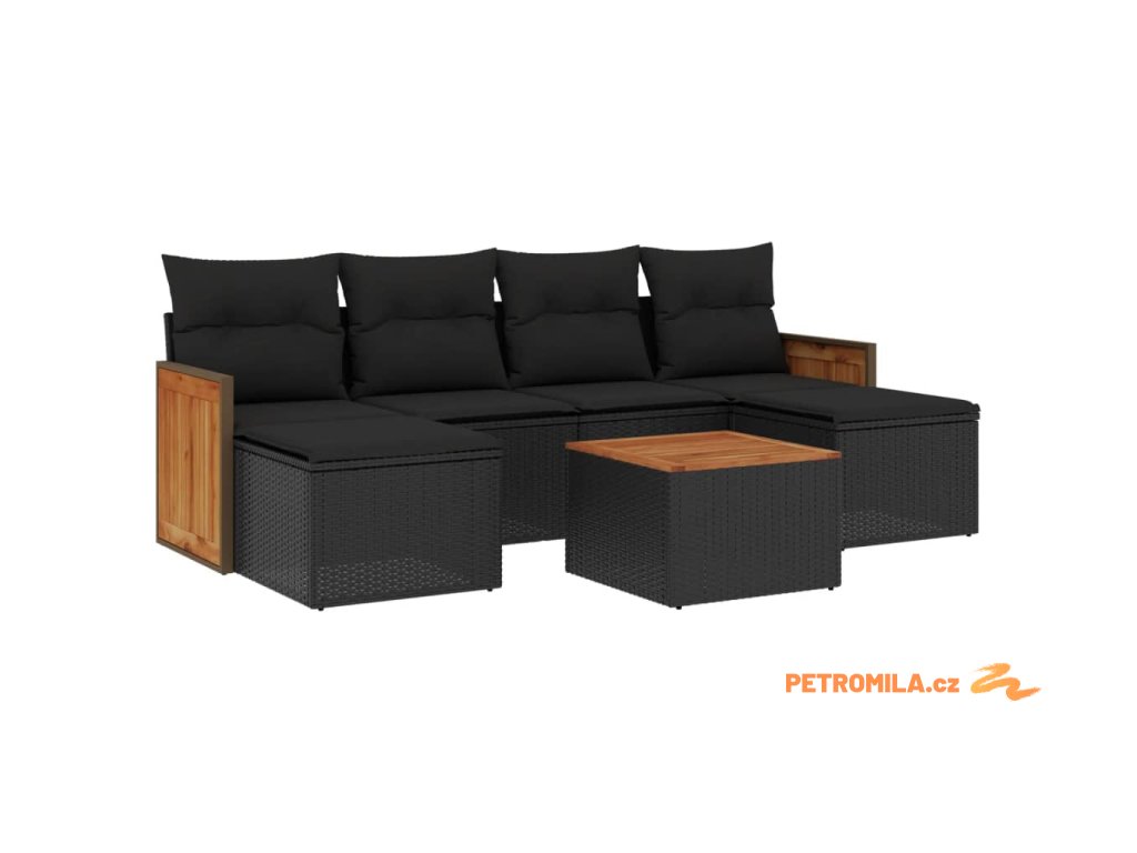 7dílná zahradní sedací souprava s poduškami černá polyratan