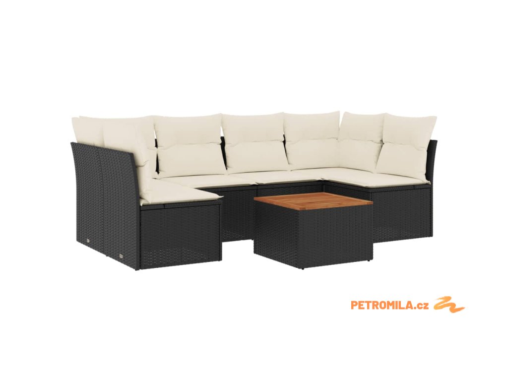 7dílná zahradní sedací souprava s poduškami černá polyratan