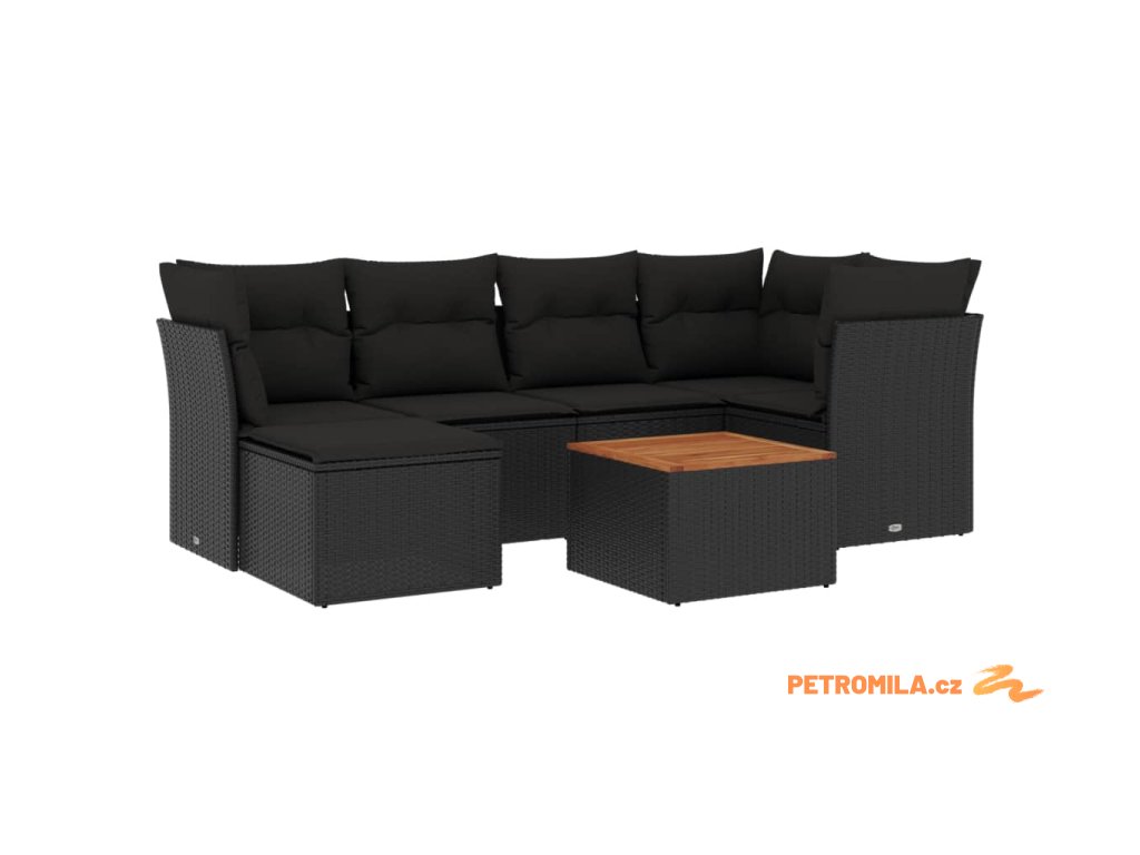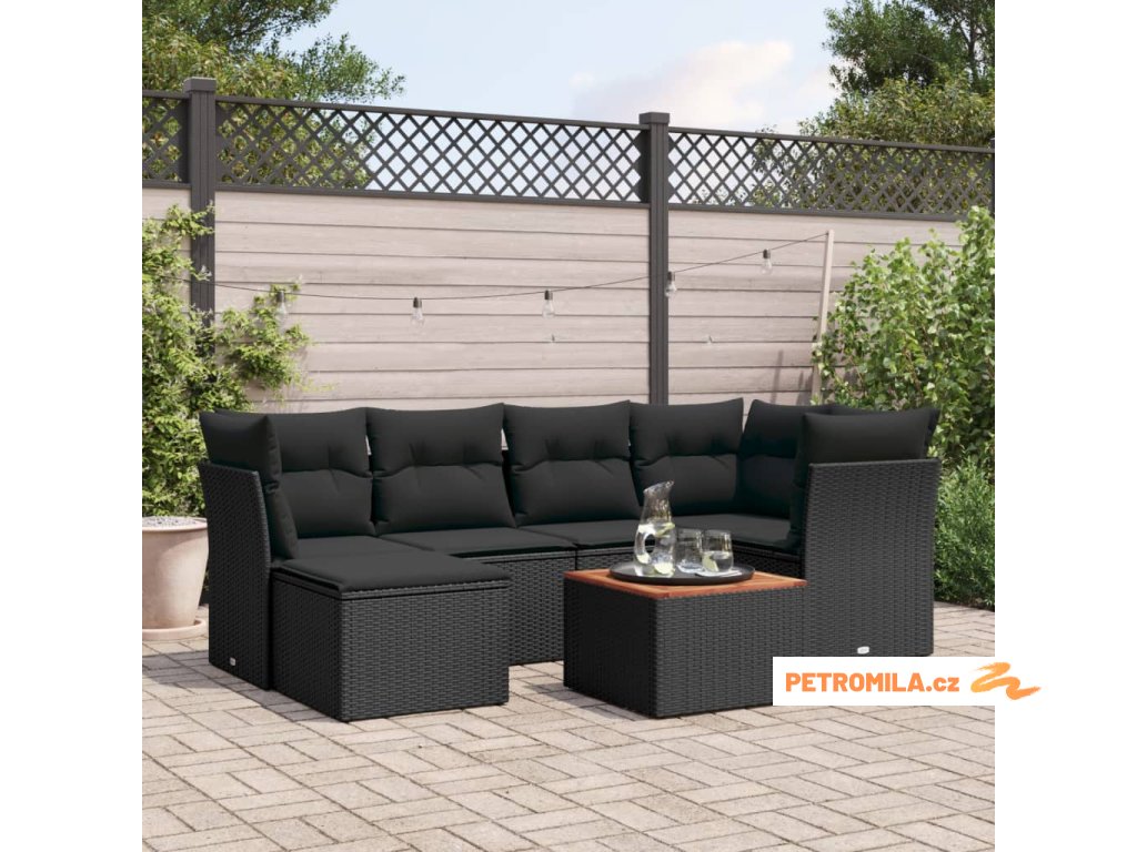 7dílná zahradní sedací souprava s poduškami černá polyratan