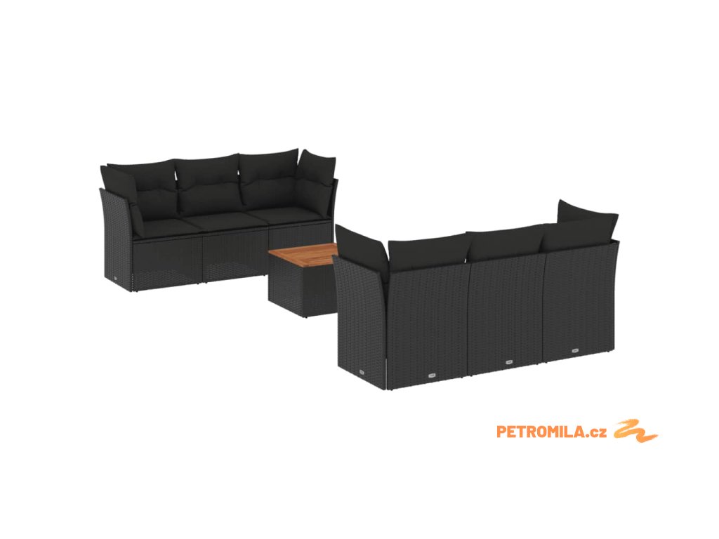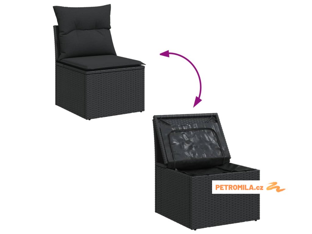 7dílná zahradní sedací souprava s poduškami černá polyratan