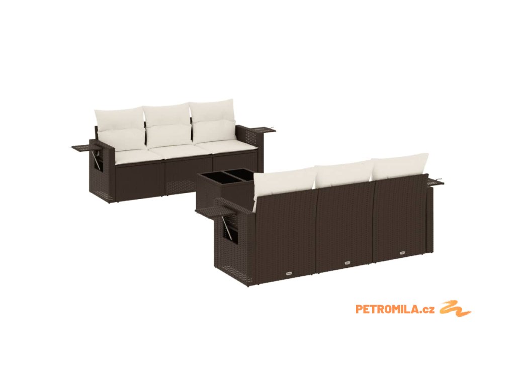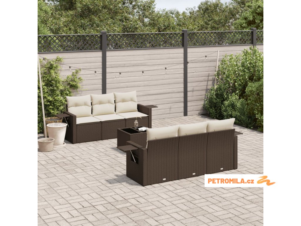 7dílná zahradní sedací souprava s poduškami hnědá polyratan