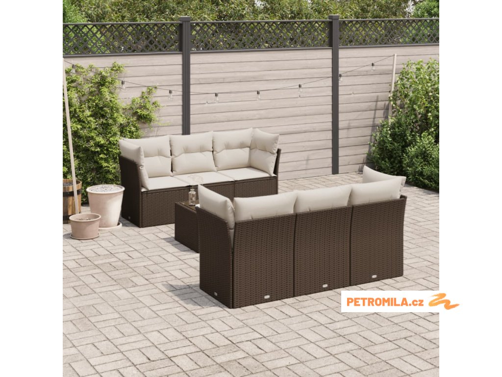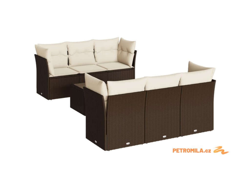 7dílná zahradní sedací souprava s poduškami hnědá polyratan
