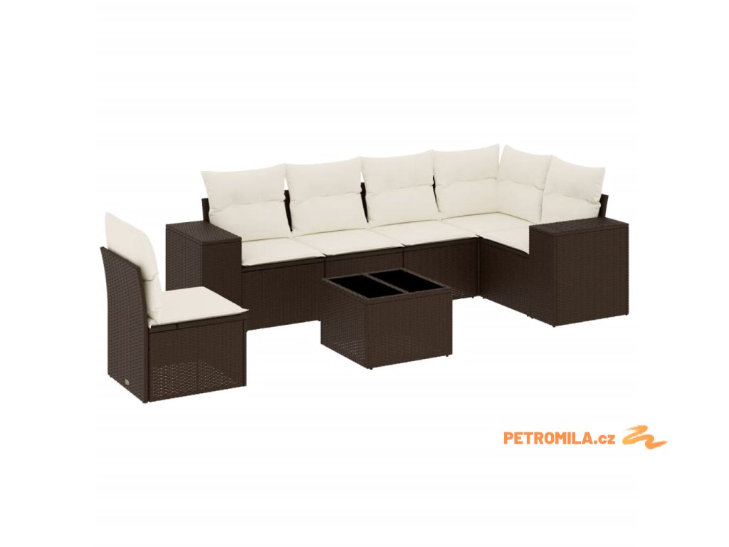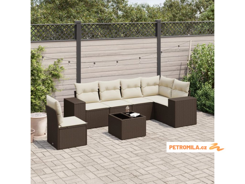 7dílná zahradní sedací souprava s poduškami hnědá polyratan
