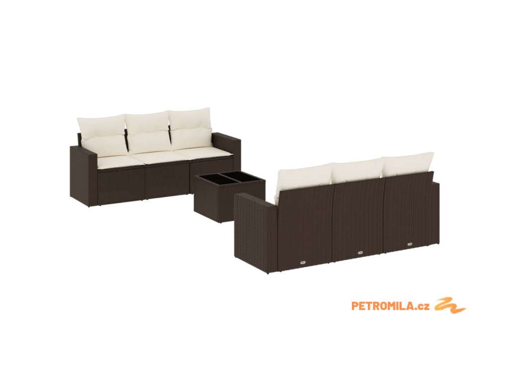 7dílná zahradní sedací souprava s poduškami hnědá polyratan