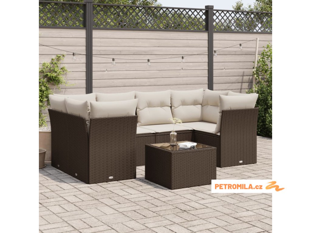 7dílná zahradní sedací souprava s poduškami hnědá polyratan