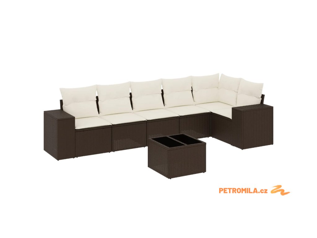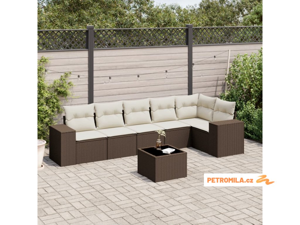 7dílná zahradní sedací souprava s poduškami hnědá polyratan