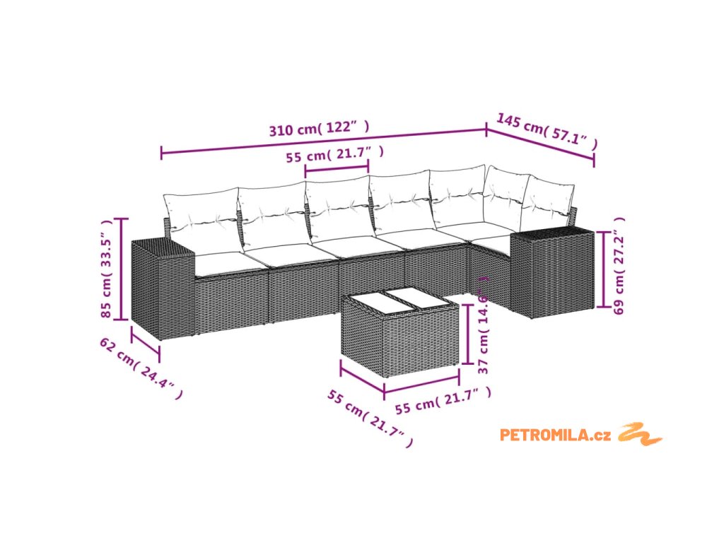 Tato zahradní sedací souprava je dokonalým doplňkem vaší zahrady, terasy nebo dvorku a poskytne vám pohodlné a příjemné místo, kde si můžete povídat s rodinou a přáteli nebo jen tak odpočívat a užívat si pobyt venku.