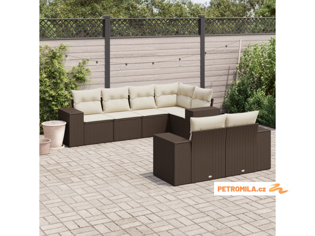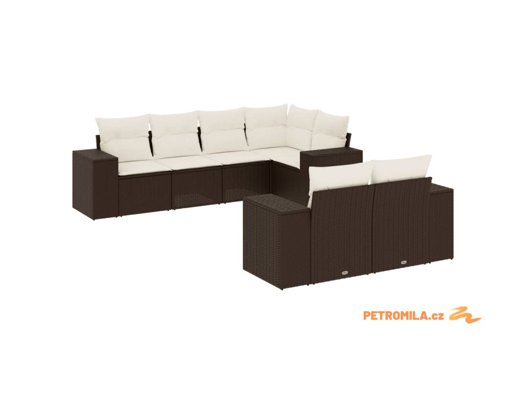 7dílná zahradní sedací souprava s poduškami hnědá polyratan