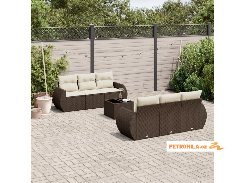 7dílná zahradní sedací souprava s poduškami hnědá polyratan