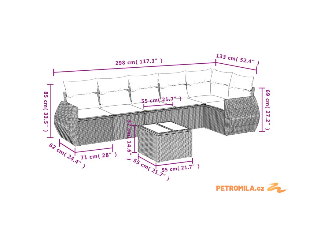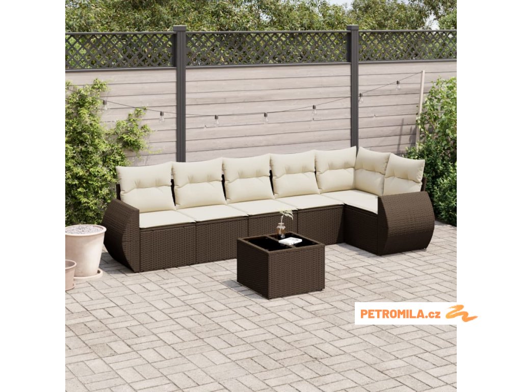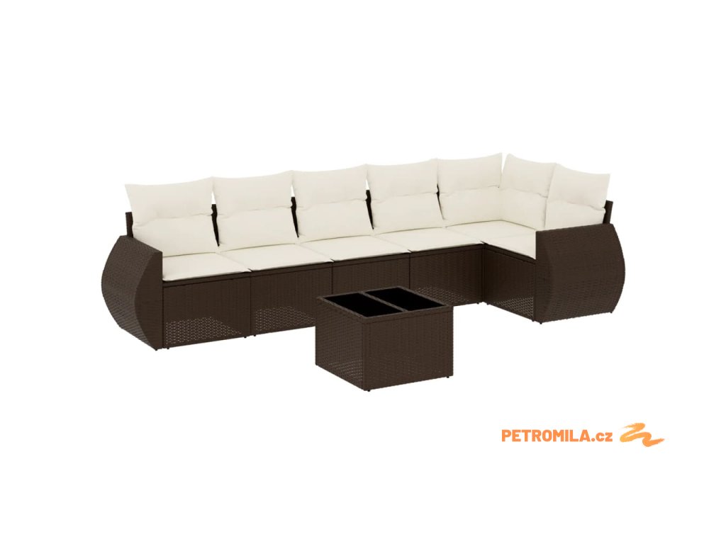 7dílná zahradní sedací souprava s poduškami hnědá polyratan
