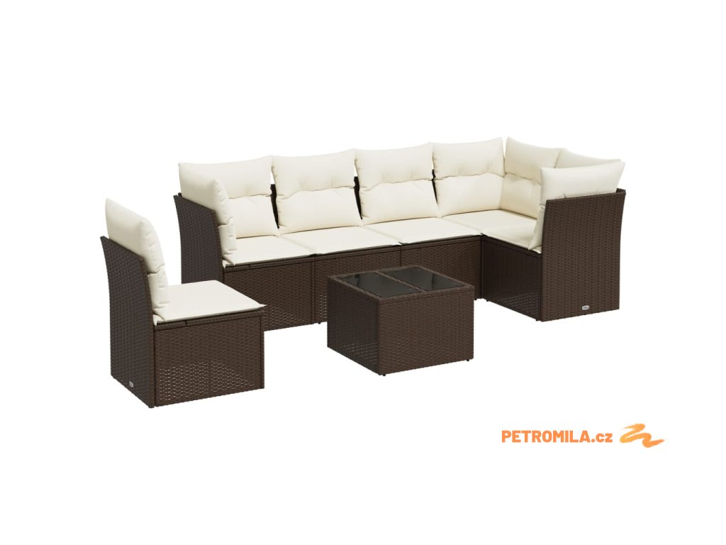 7dílná zahradní sedací souprava s poduškami hnědá polyratan