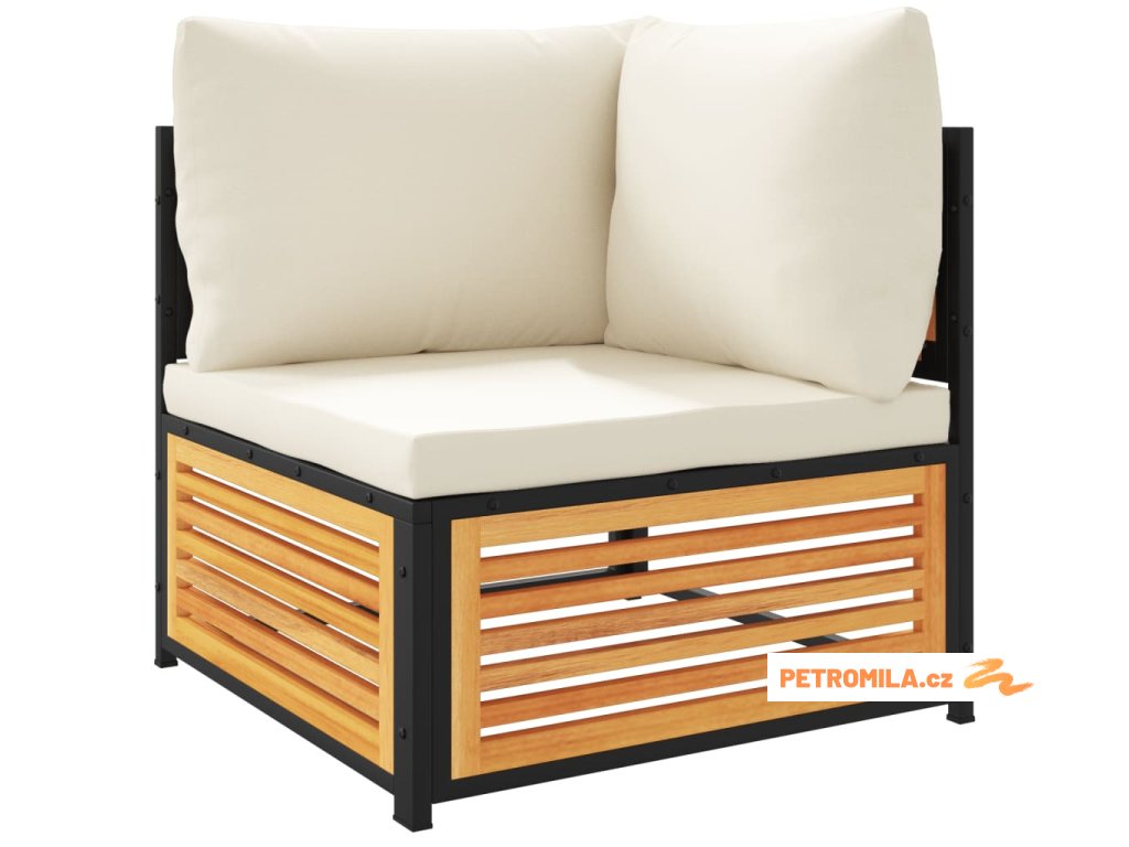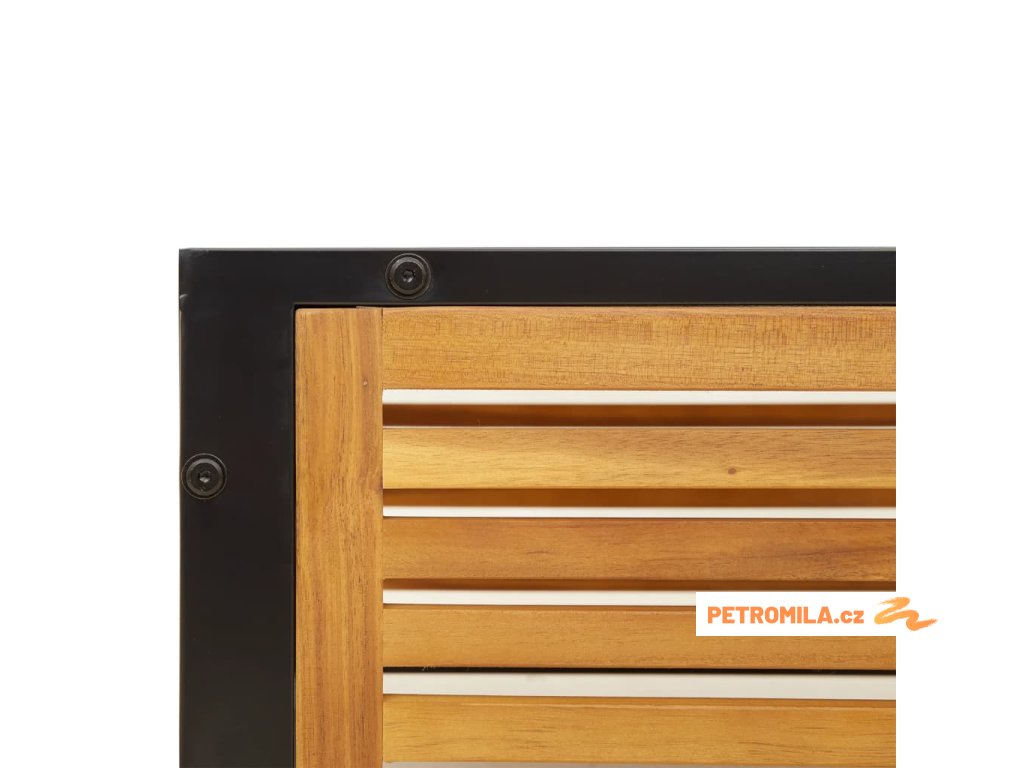 - Materiál: masivní akáciové dřevo s olejovou povrchovou úpravou, práškově lakovaná ocel