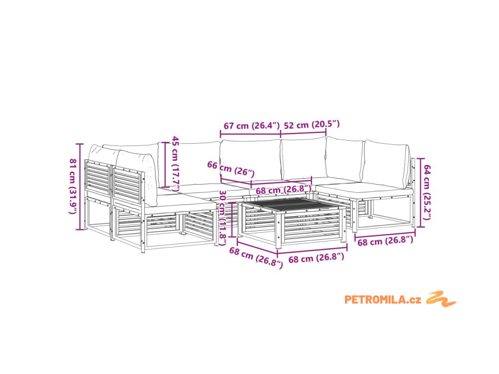- Celkové rozměry: 68 x 68 x 30 cm (D x Š x V)