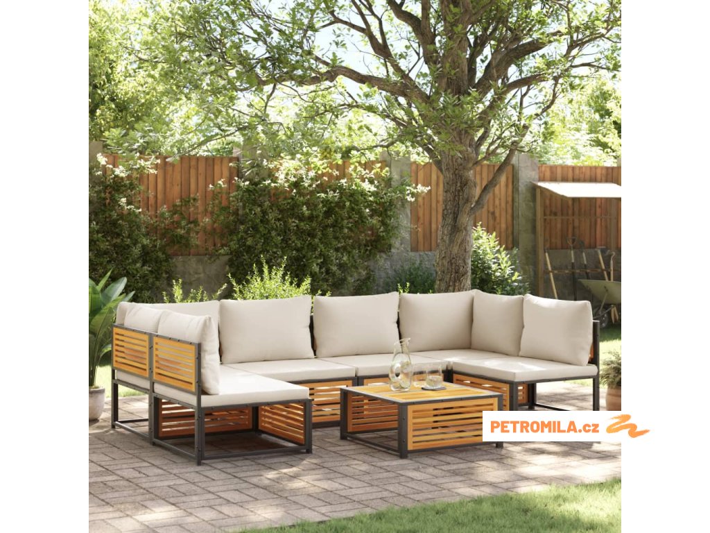 7dílná zahradní sedací souprava s poduškami masivní akácie