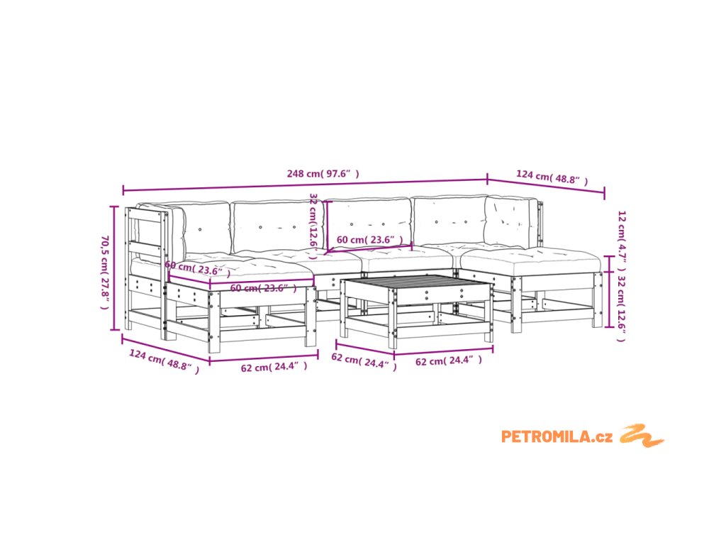 6dílná zahradní sedací souprava a podušky impregnovaná borovice
