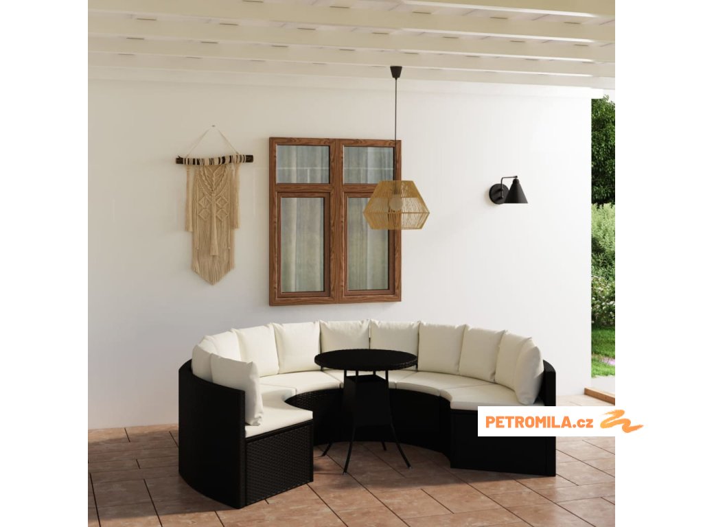 7dílná zahradní sedací souprava s poduškami polyratan černá
