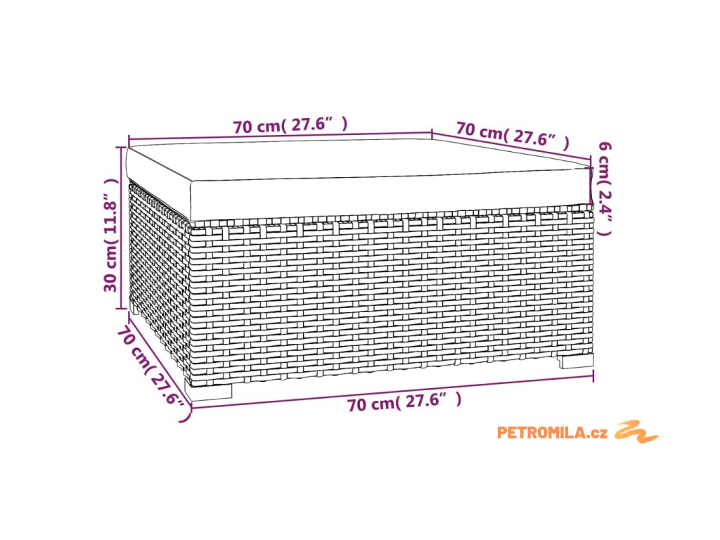 - Rozměry podušky na sedák: 70 x 70 x 6 cm (D x Š x T)