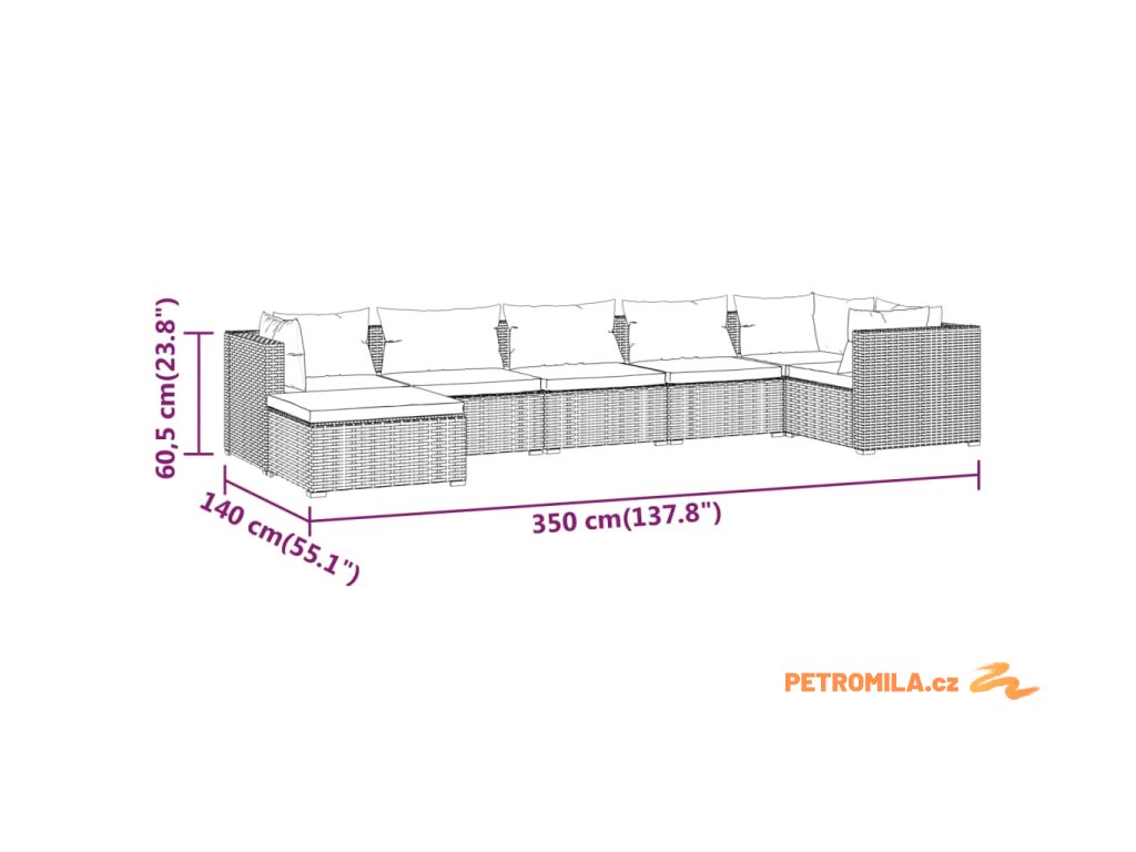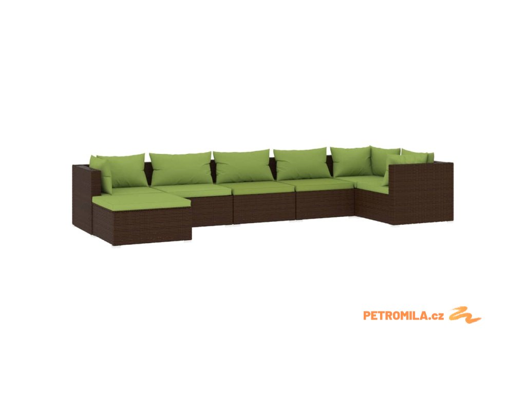 7dílná zahradní sedací souprava s poduškami polyratan hnědá
