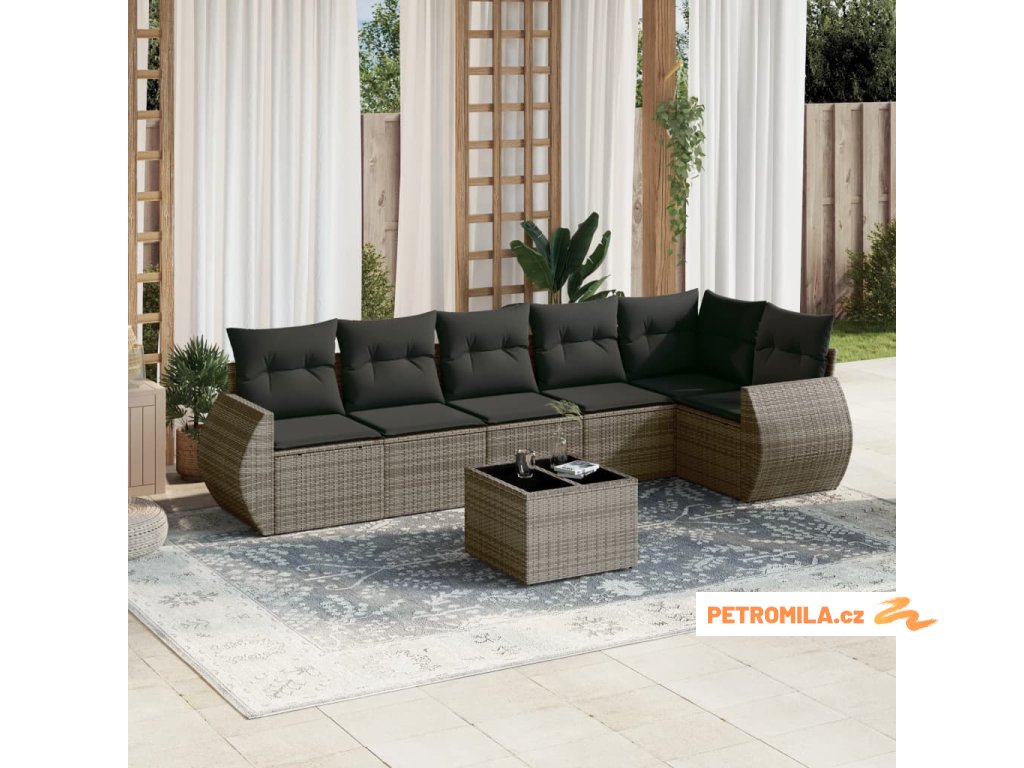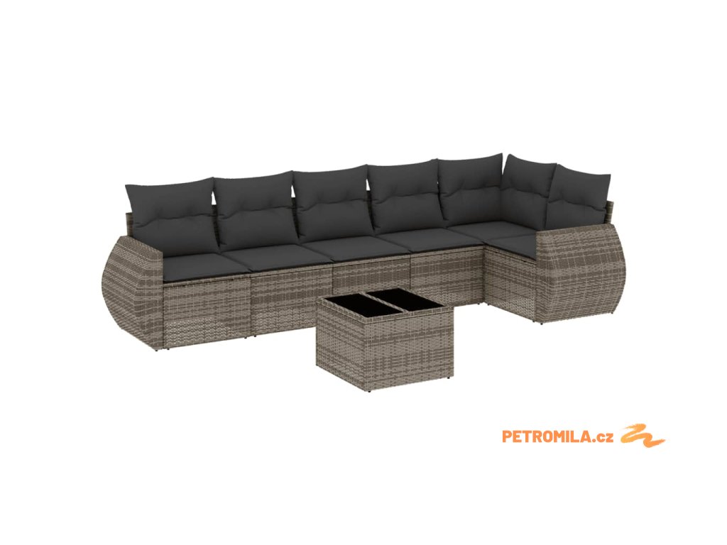 7dílná zahradní sedací souprava s poduškami šedá polyratan