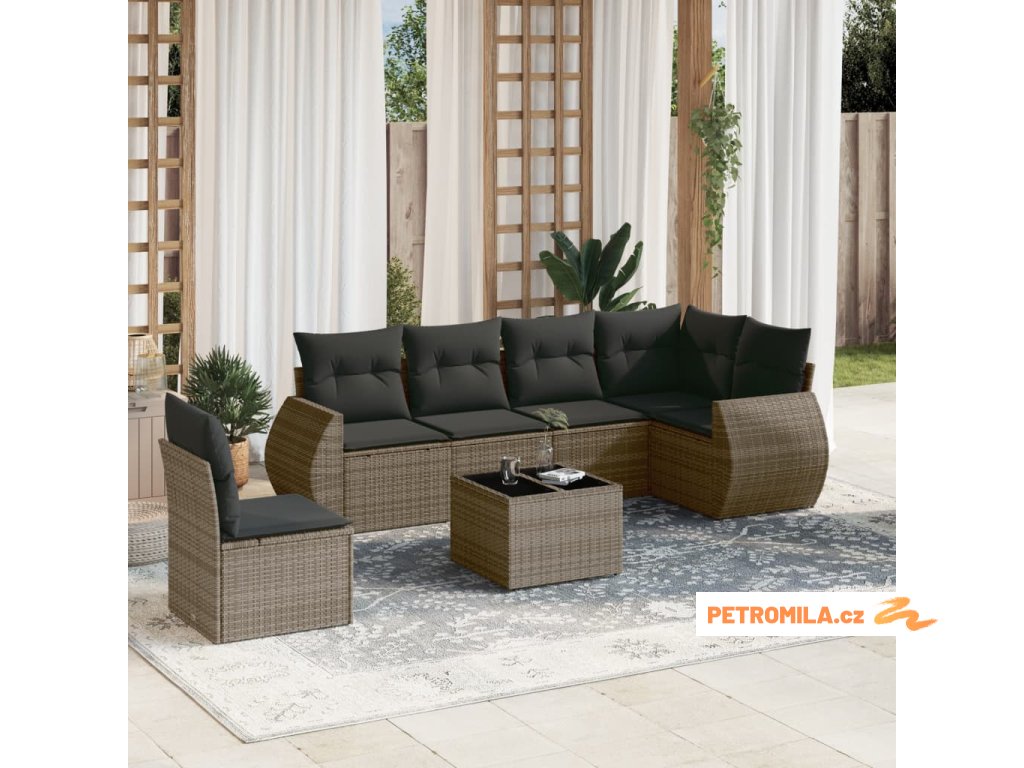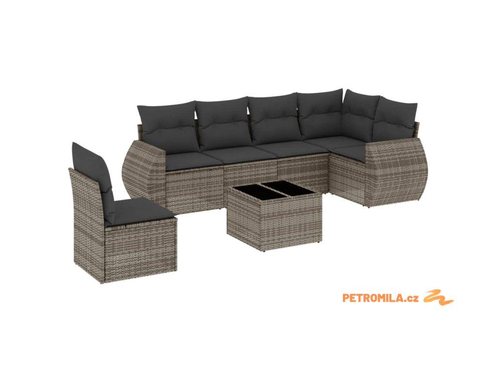 7dílná zahradní sedací souprava s poduškami šedá polyratan