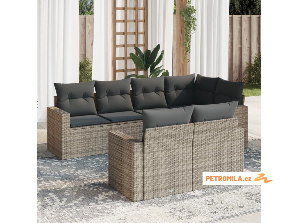 7dílná zahradní sedací souprava s poduškami šedá polyratan