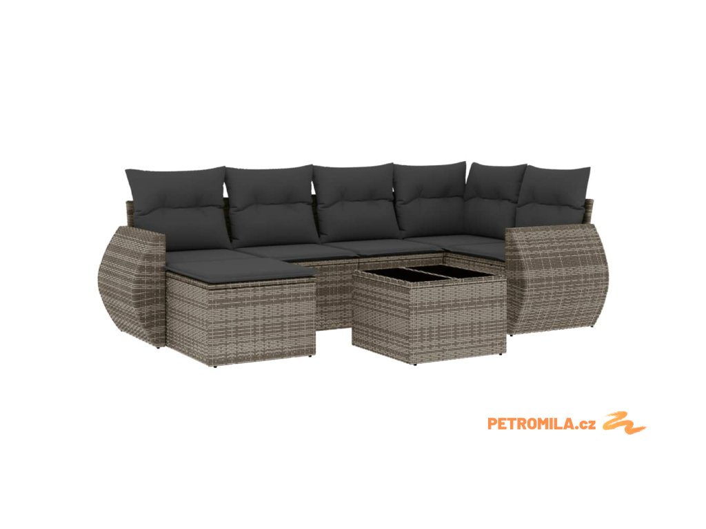 7dílná zahradní sedací souprava s poduškami šedá polyratan