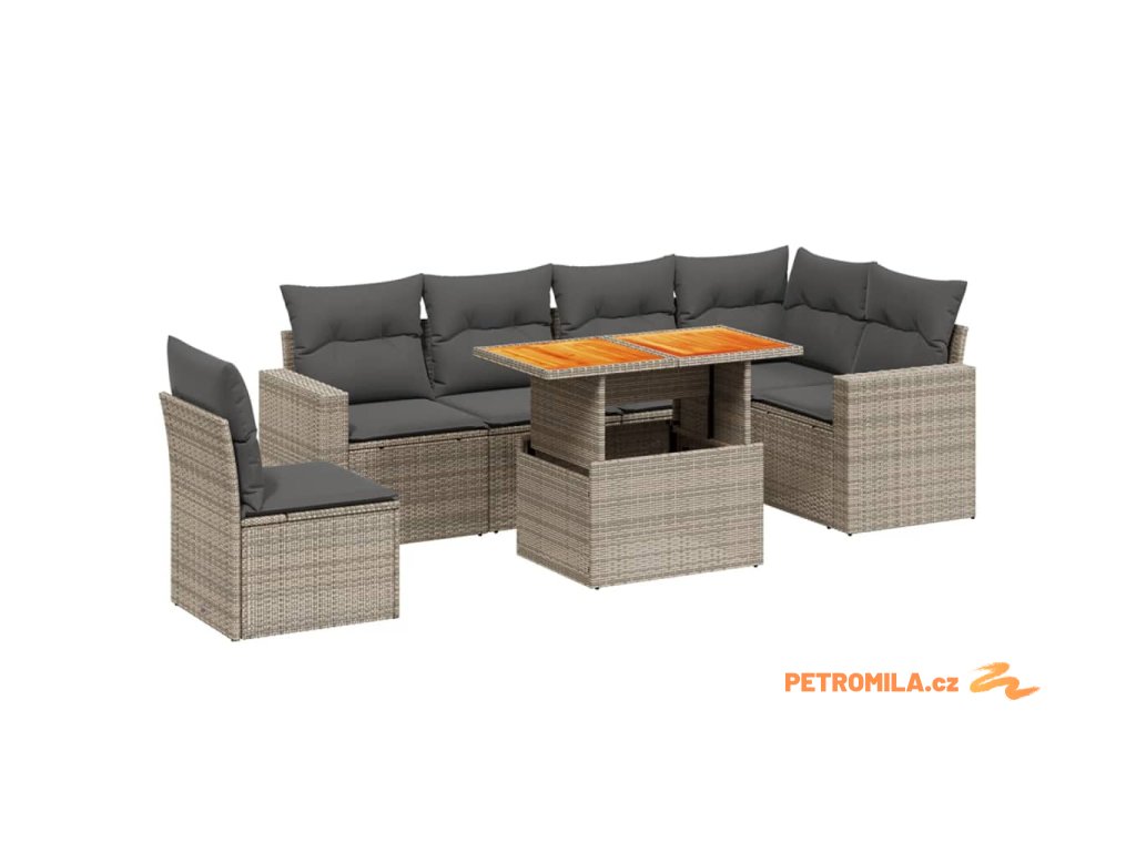 7dílná zahradní sedací souprava s poduškami šedá polyratan