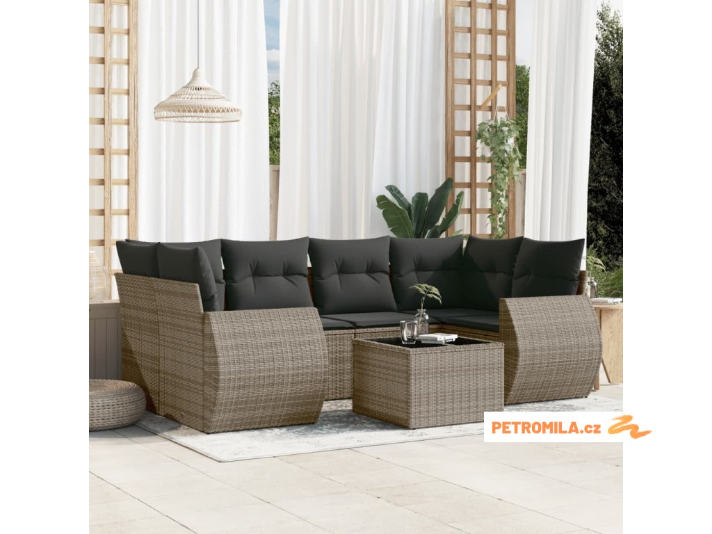 7dílná zahradní sedací souprava s poduškami šedá polyratan