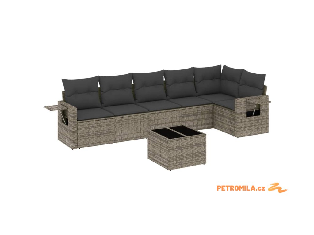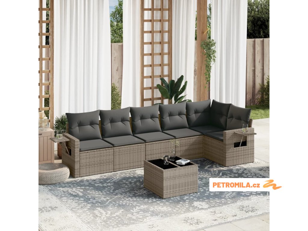 7dílná zahradní sedací souprava s poduškami šedá polyratan