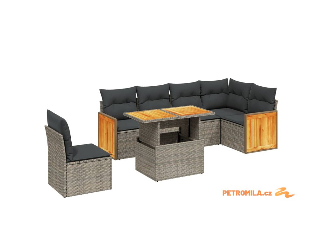 7dílná zahradní sedací souprava s poduškami šedá polyratan