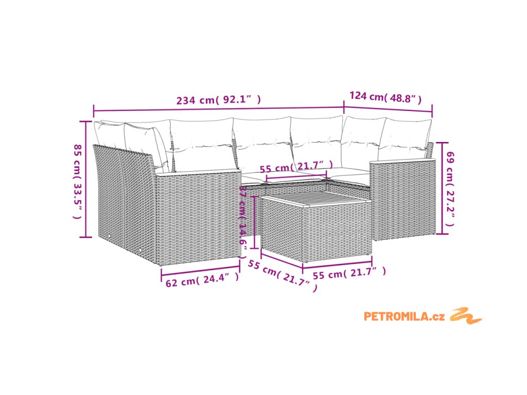 7dílná zahradní sedací souprava s poduškami šedá polyratan
