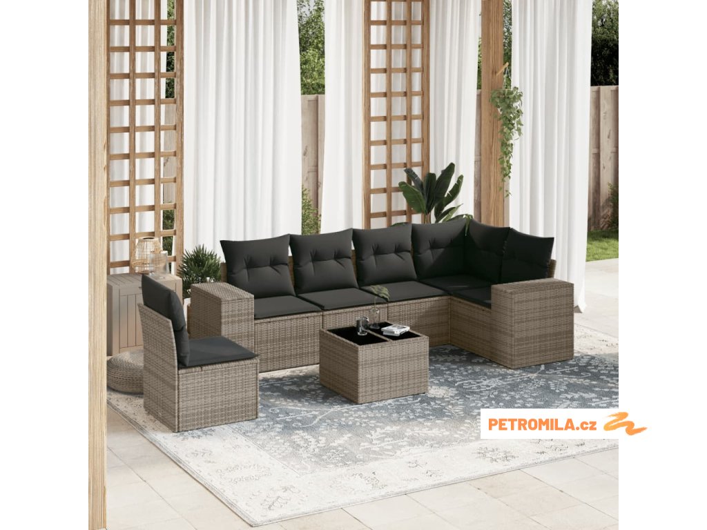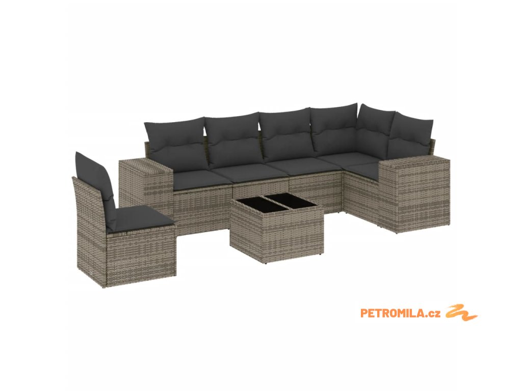 7dílná zahradní sedací souprava s poduškami šedá polyratan
