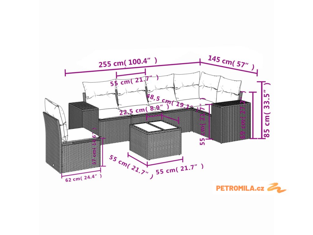 Sada zahradních pohovek s polštářem 8 pcs Béžová Poly ratan
