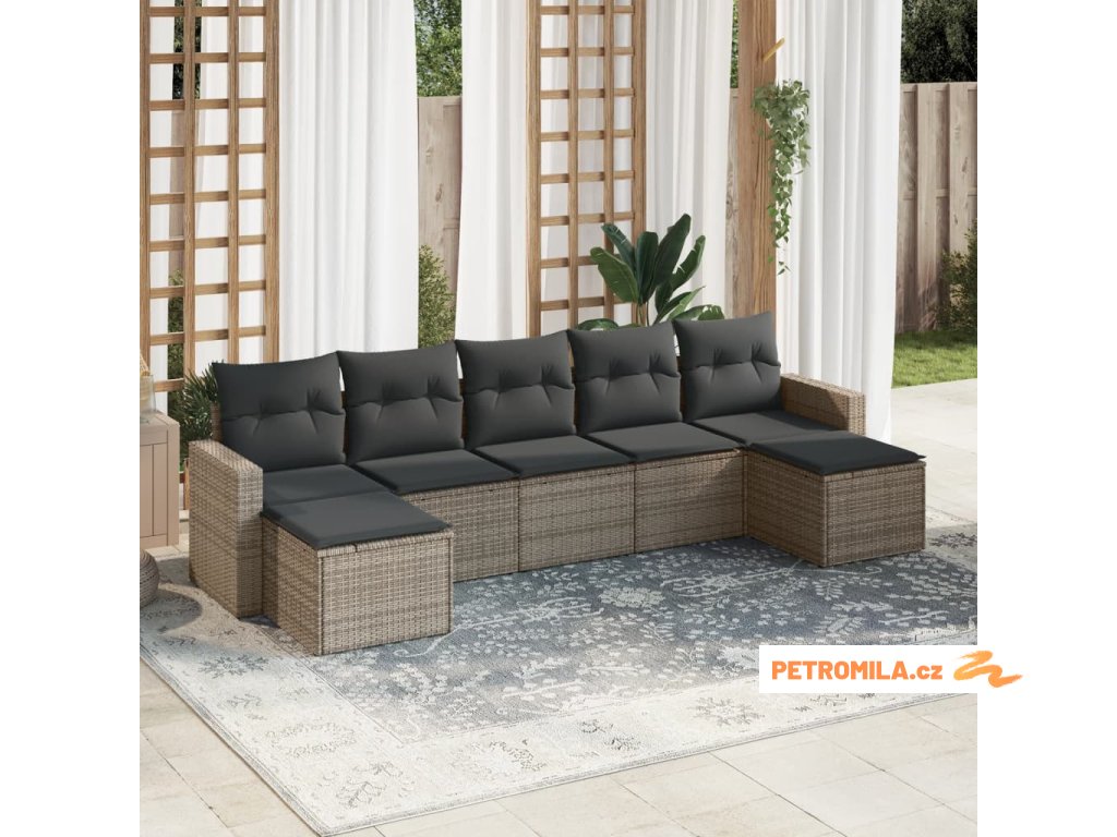 7dílná zahradní sedací souprava s poduškami šedá polyratan