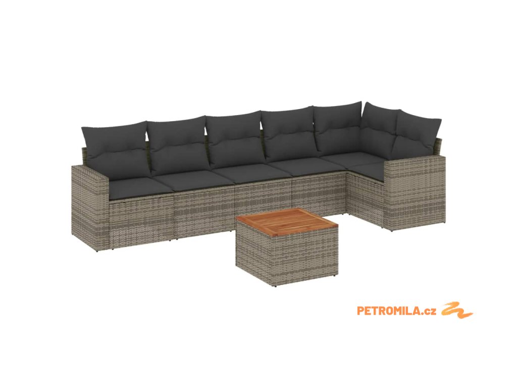7dílná zahradní sedací souprava s poduškami šedá polyratan
