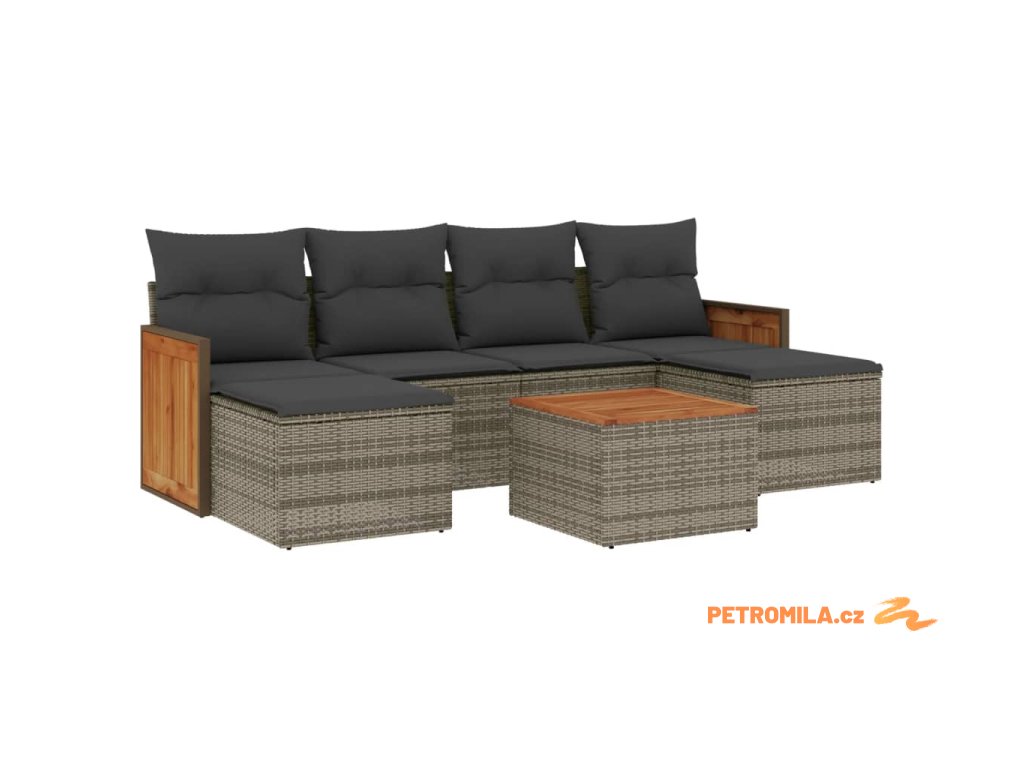 7dílná zahradní sedací souprava s poduškami šedá polyratan